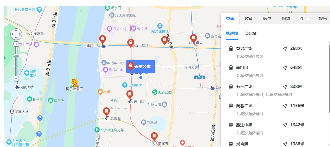 近鄰湘江中路、蔡鍔路、黃興中路、人民西路,道路通達(dá)度較優(yōu) |
