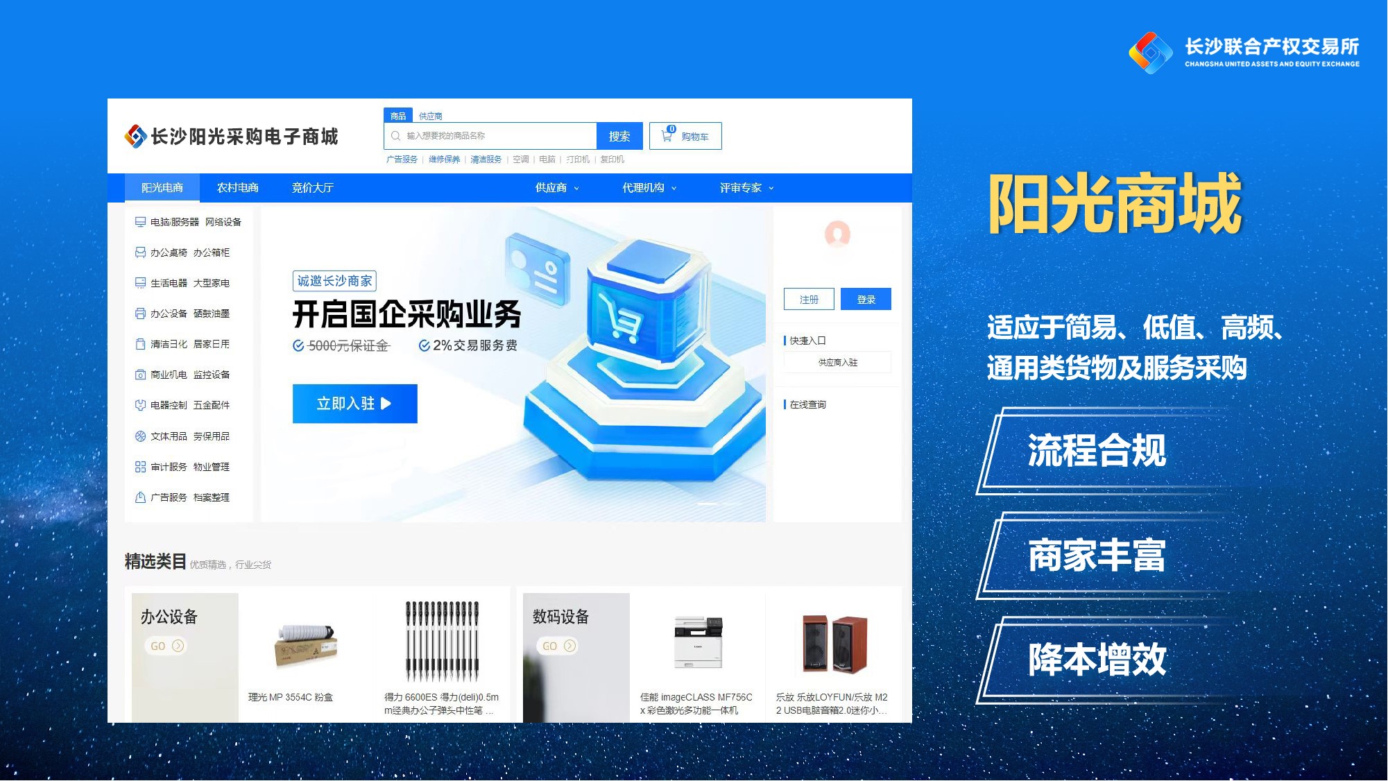 長沙陽光采購服務平臺是在市國資委指導下打造的全省首個集“招采+商城+監(jiān)管”于一體的綜合性電子交易服務平臺,是打造信息國企、數(shù)字國企、陽光國企的重要一環(huán)。自2021年5月上線以來,平臺在促進資金節(jié)約、提高工作效率、確保采購流程規(guī)范透明及加強國有資產(chǎn)監(jiān)管等方面發(fā)揮了重要作用。近兩年來,平臺已累計為采購主體節(jié)約資金近2500萬元,綜合節(jié)支率達7%。